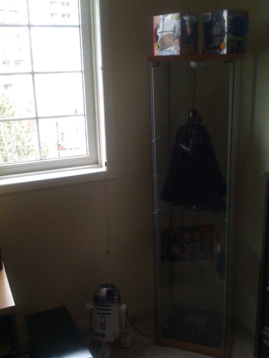 Sadly, I just found out tonight that Vader’s lights no longer work. Shame really. His saber lights up as well as his chest plate and belt lights. It really is impressive, most impressive. Ah well.