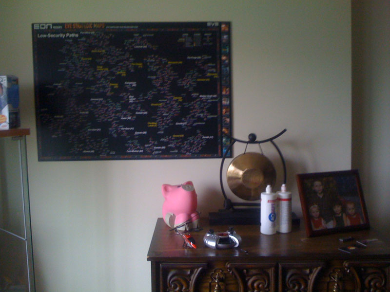 It’s important to balance intellectual pursuits. From comics to alternate history novels to 3D art training and actionscript development to a little bit of HBO on the TV, always keeping the brain engaged is a good thing. In the background, is the EON Magazine EVE Online Regional Map.