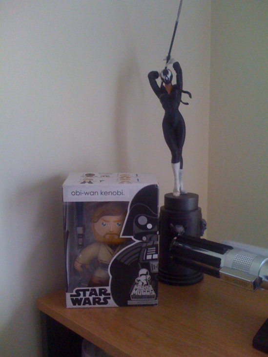 1. Collectible lightsabers are cool – I’ve got both the Anakin and Obi-Wan lightsabers from Episode III sitting next to me, as well as Anduril and a couple of other lightsabers. Those two I’m much prouder of, as I designed those lightsabers myself, as well as assembled the electronics for them for both light and sound…