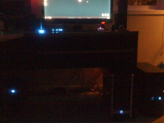 From a lower angle you can see the lights of the Router in the back. And yes, I really am fond of Windows 7.