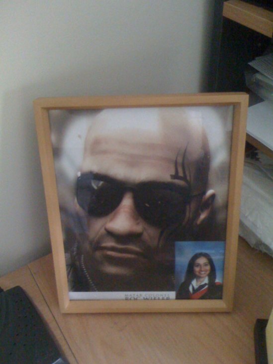 Yup, I have a picture of Matar Colonel Roc Wieler on my desk. Helps me stay in character. I just glance over at him and think “WWRD?” That beautiful woman in the lower corner is my wife. I just glance over at her and think “What would she NOT do and kick my ass for doing?” It’s a good balance for my virtual life.