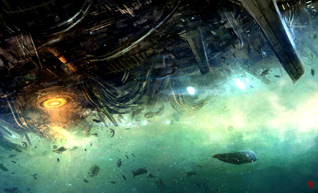Then my shields fails as the group of battleship’s missiles found me an easy target. I clenched my teeth as my entire ship shook from bow to stern. Aura warned me that my shields were depleted, my armour plating already showing breaches. I saw the wreck of the original interceptor I had encountered only 9,000 km away, and thought it imperative to salvage a sample of what I had encountered in order to alert the others I would hopefully enlist for help.