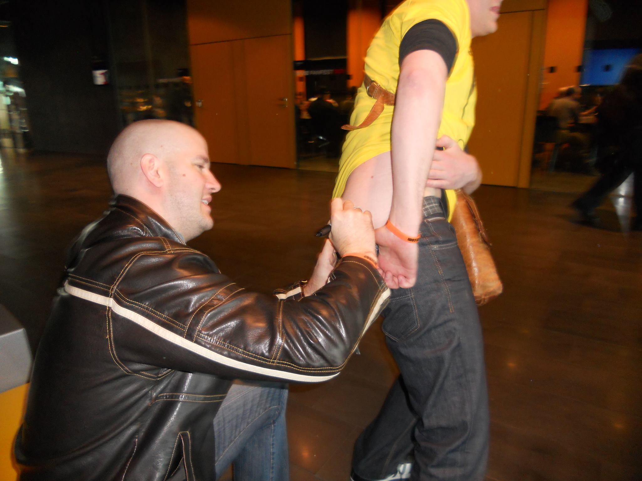No matter how many times I hear this story it still makes me laugh. So much awesome. And laugh in a good way, just to be clear. This barely tops the book guy that showed up this year for me to autograph his custom made books… by a nose. Or, should I say, by a butt.